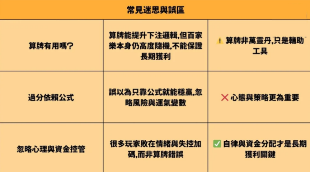 百家樂算牌不是保證你贏,而是讓你少做錯事、穩定長期表現,進而增加百家樂賺錢機率。